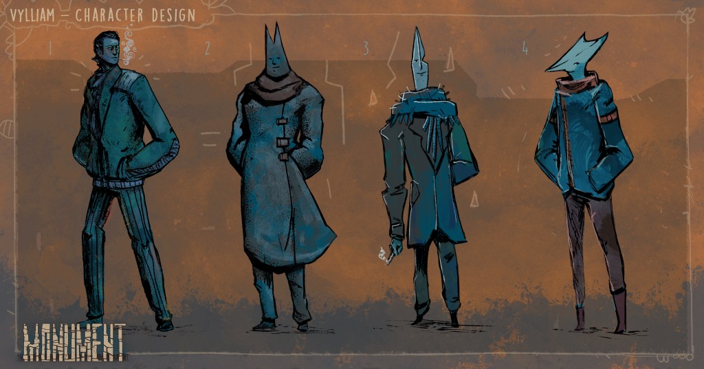 Monument is an in-development story-driven, psychological adventure game. Vylliam was a soldier in a multi-generational war. He was deemed unfit-to-fight after shrapnel ripped through his brain. He has been sent back ‘home’, to a village known as Ankle, to live out his final days.